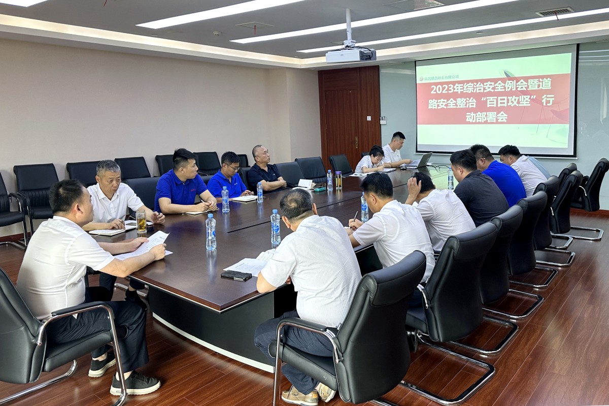 為貫徹落實南昌市道路交通安全專業(yè)委員會《全市道路交通安全整治“百日攻堅”行動方案》的文件精神,7月31日,贛昌砂石公司召開了綜治安全例會暨道路安全整治“百日攻堅”行動部署會,公司黨委副書記、總經(jīng)理李驍,副總經(jīng)理劉捷及各生產(chǎn)經(jīng)營單位安全穩(wěn)定分管中層等相關(guān)人員參加。
