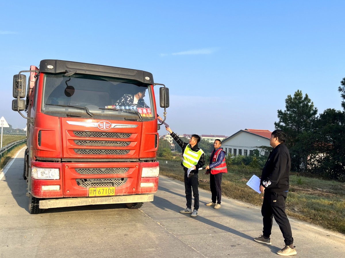 分公司工作人員在砂場(chǎng)組織運(yùn)輸車(chē)司機(jī)開(kāi)展了交通安全宣講活動(dòng),通過(guò)宣講因疲勞、分心、超速駕駛等違規(guī)行為引發(fā)的交通事故案例,提醒司機(jī)師傅們規(guī)范駕駛。隨后,為貨車(chē)駕駛員派發(fā)了《致駕駛員的一封信》,告誡運(yùn)輸司機(jī)駕駛過(guò)程中按規(guī)定路線行駛,充分做到行車(chē)安全。