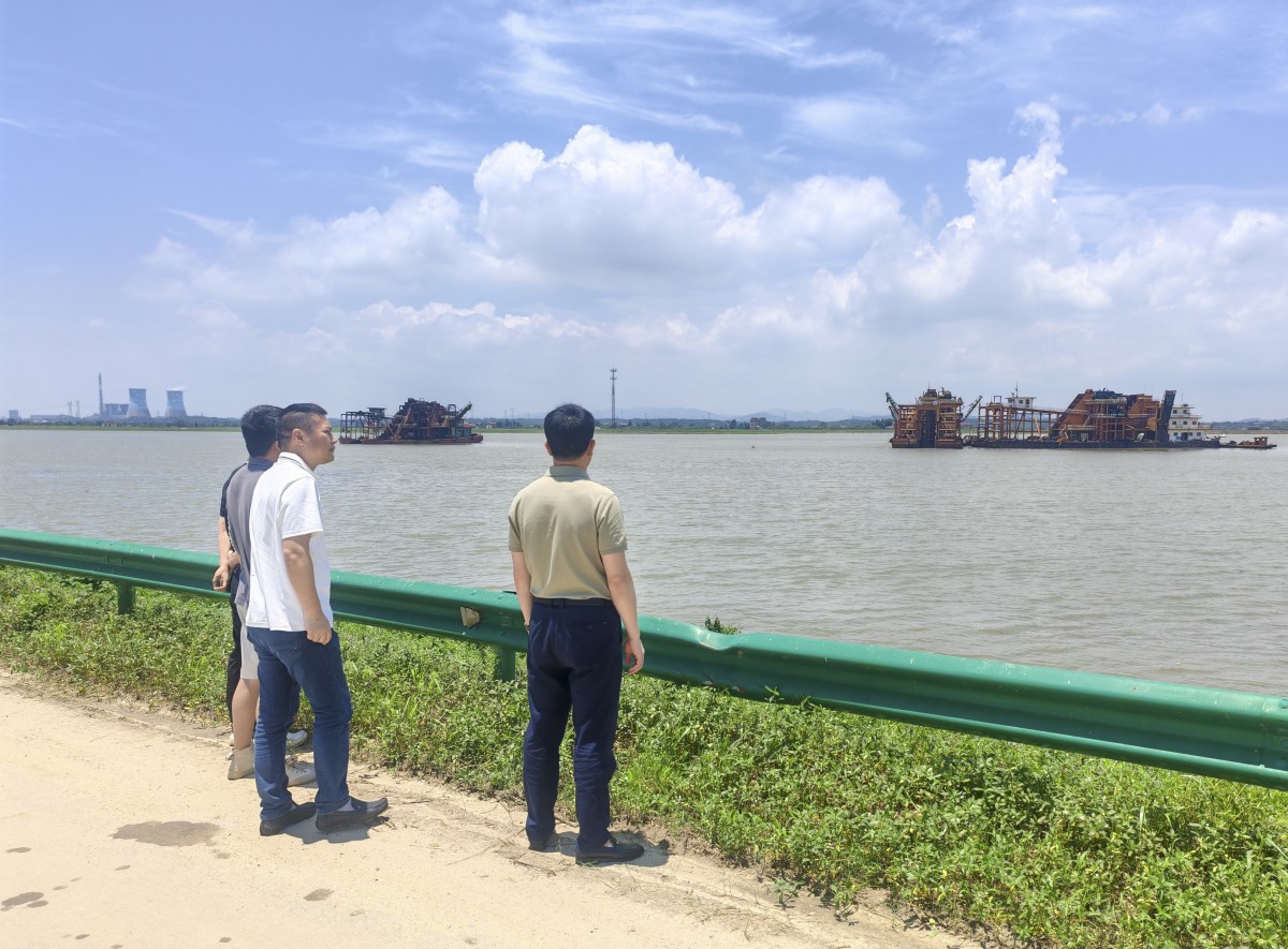 檢查組一行對(duì)贛撫尾閭作業(yè)區(qū)10余條采砂船、運(yùn)力船及??吭诤影毒€的浮吊等設(shè)備的??壳闆r進(jìn)行了檢查,對(duì)船只錨繩等安全設(shè)備隱患進(jìn)行了排查,對(duì)船舶工作人員的在崗情況、巡查工作進(jìn)行了檢查。