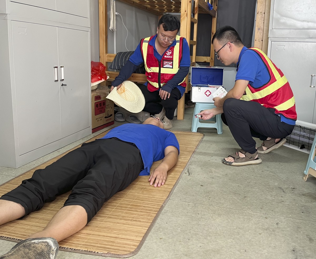 為強化全體職工的安全意識,增強自我防護能力和應急處置能力,8月1日下午,贛昌砂石公司南昌縣分公司在清湖砂場組織開展了高溫防中暑應急演練活動。分管中層、各砂場班長、安全員及部分員工參加演練。