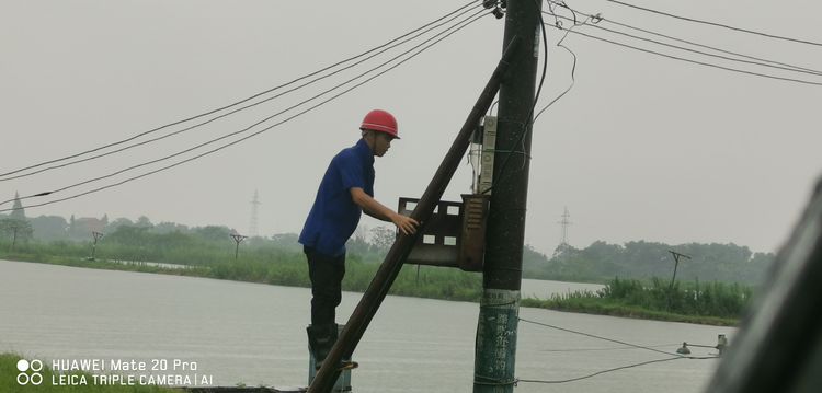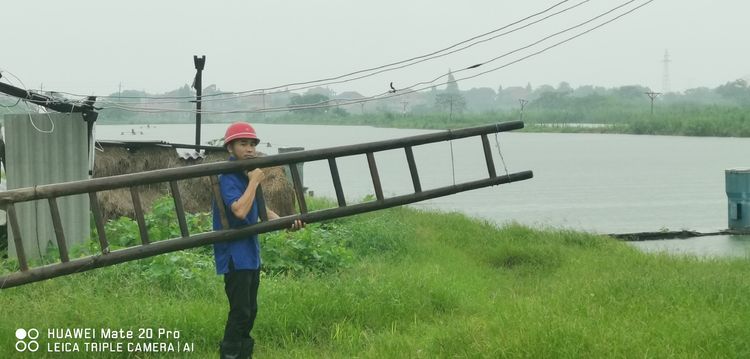 作為砂場班長,熊富華第一個沖鋒在前,考慮到楊家灘監(jiān)控設備位置比較低,他立馬戴上安全帽,扛起樓梯,向電源總開關走去。我們看在眼里,急在心里,這么大的雨多危險啊,我們連連說道:“熊班長,雨太大了,等小點再去吧。”可熊班長卻笑笑說:“沒事沒事,設備要緊,我有經(jīng)驗,放心吧。”