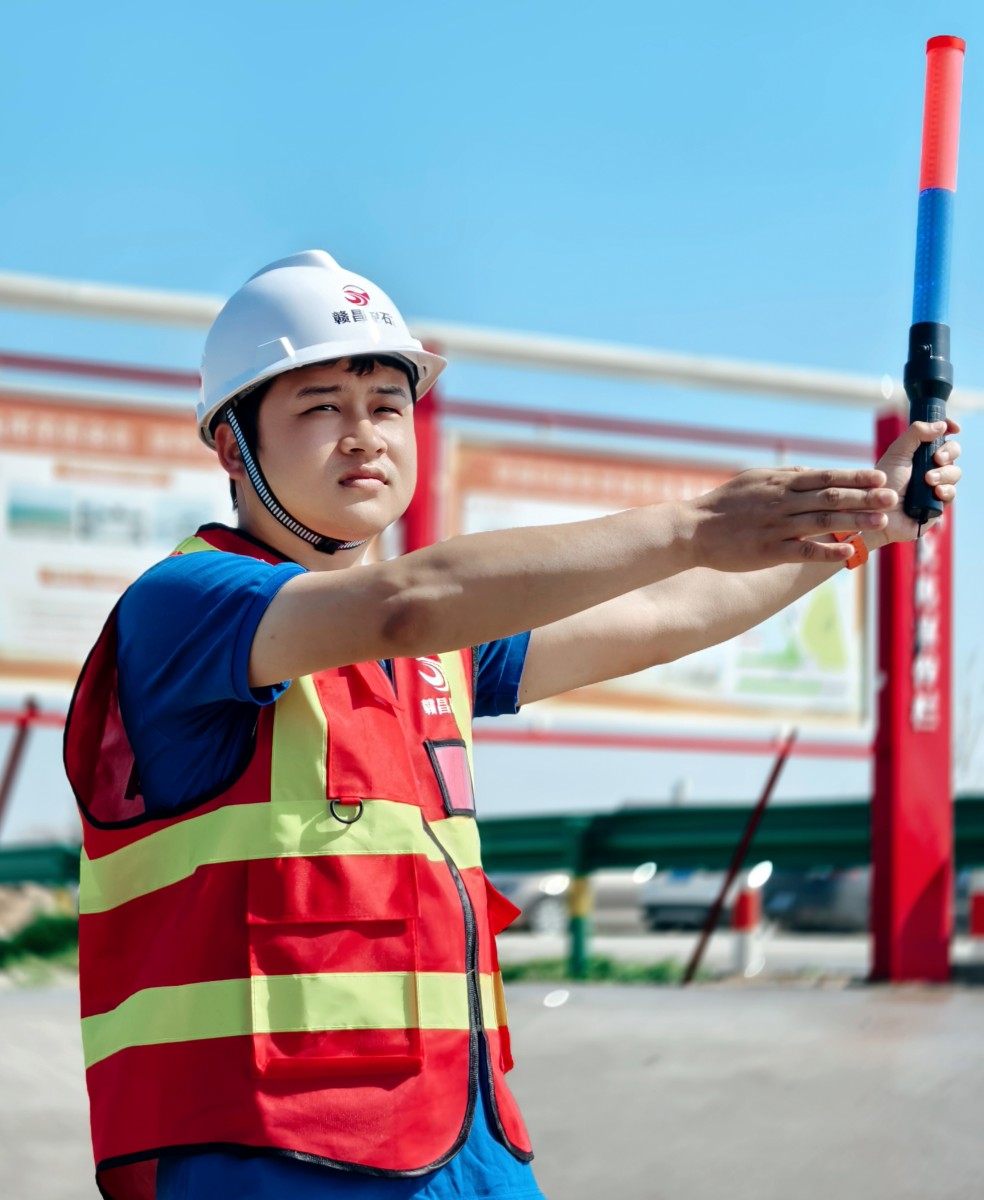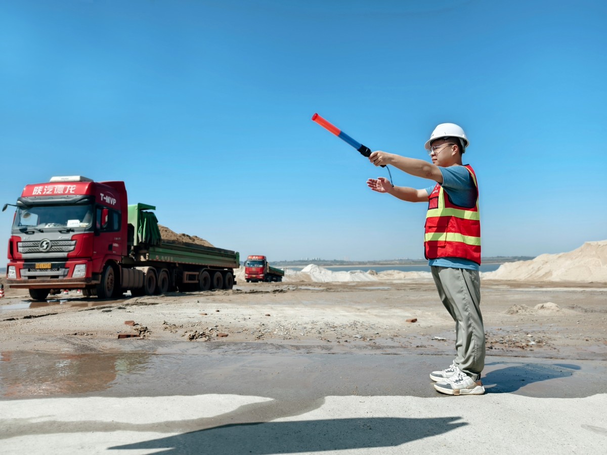 9點(diǎn),為了保障運(yùn)砂車輛快速有序地進(jìn)出砂場,90后的兩位小伙兒熊峰和徐成瓏身穿反光背心,手持指揮棒分別在砂場出入口和發(fā)貨場地上,扯著大嗓門指揮引導(dǎo)著車輛排隊(duì)有序出場,維護(hù)砂場經(jīng)營秩序。待回到磅房后,他們只是輕輕拍了拍身上的塵土,喝口水,絲毫沒有抱怨。