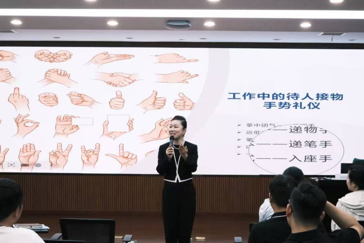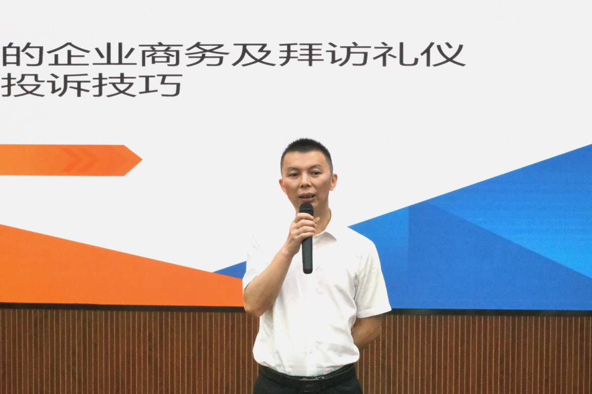 本次培訓(xùn)邀請(qǐng)到專業(yè)培訓(xùn)導(dǎo)師張坤老師現(xiàn)場(chǎng)授課,授課從搭建禮儀增效思維、營(yíng)造商務(wù)場(chǎng)景“視覺錘”、打造禮儀增效黃金法則、提升投訴處理應(yīng)對(duì)技巧等四個(gè)方面展開,從實(shí)戰(zhàn)角度出發(fā),使大家清晰明了的掌握不同場(chǎng)合的禮儀知識(shí)與溝通技巧。