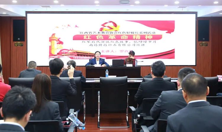 本次活動有幸邀請了革命老紅軍的后代--羅合毅老師進(jìn)行授課,由贛昌砂石公司黨委副書記、常務(wù)副總朱鳳主持。參加人員為贛昌砂石公司在家領(lǐng)導(dǎo)班子、江西省藝術(shù)協(xié)會成員、各支部黨員共計76人。